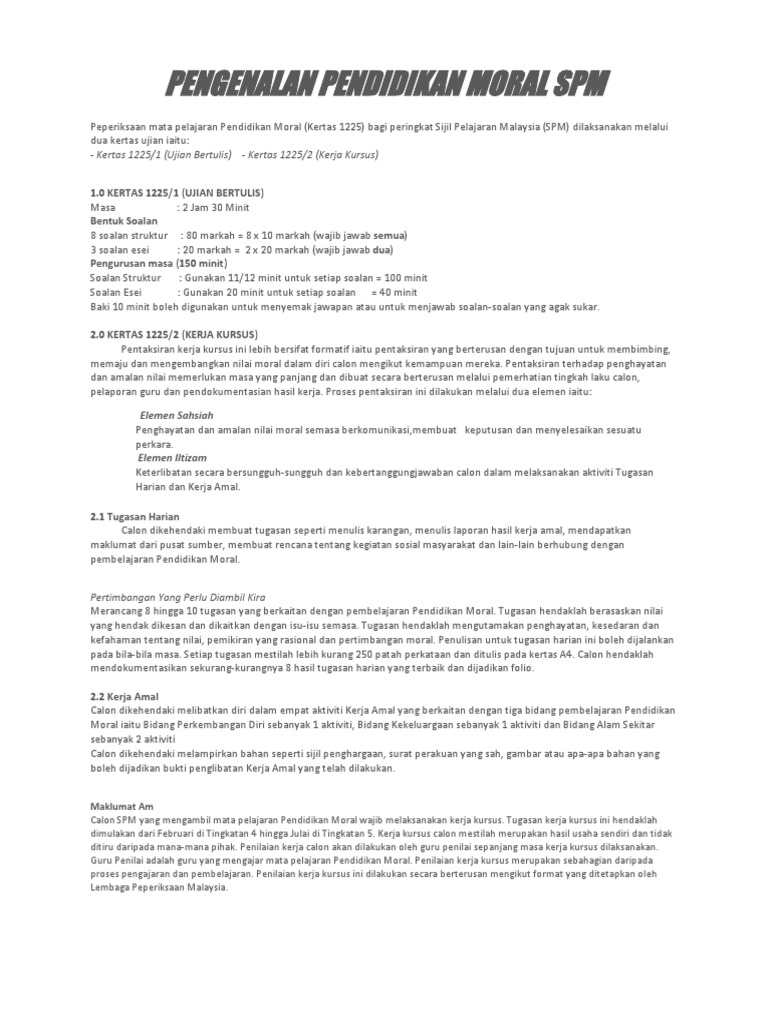 Pengenalan Pendidikan Moral Spm