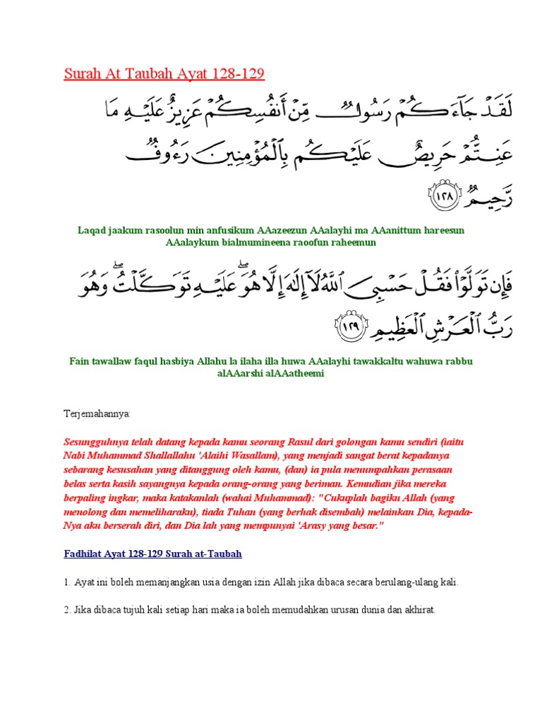 Doc Kelebihan Dan Khasiat Surah At Taubah Ayat 128 Emira Adrina Academia Edu