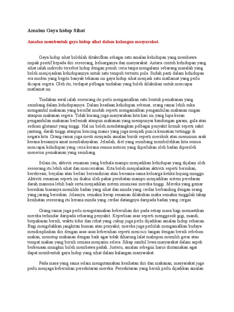 Hidup Amalan Gaya Hidup Sihat Karangan Pendek
