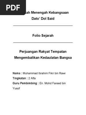 Folio Sejarah Pt3 2019 Contoh Tingkatan 3