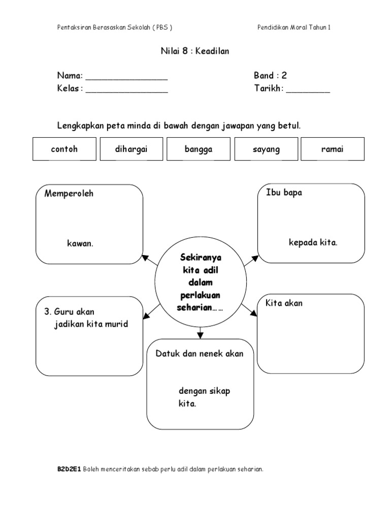 Latihan Pendidikan Moral Tahun 1 Keadilan