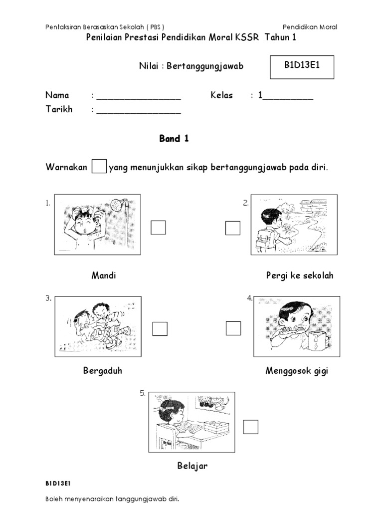 Evidens Pbs Pendidikan Moral Tahun 1 Nilai Bertanggungjawab Band 1 6