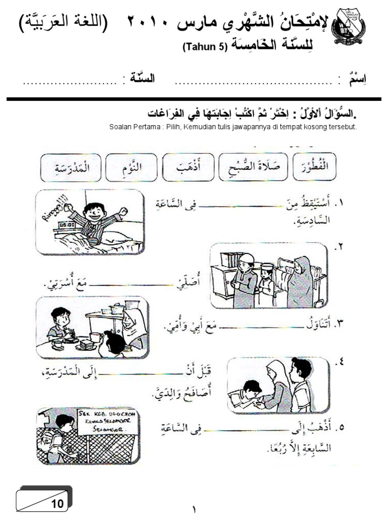 Soalan Bahasa Arab Bulan Mac 2016 Tahun 5