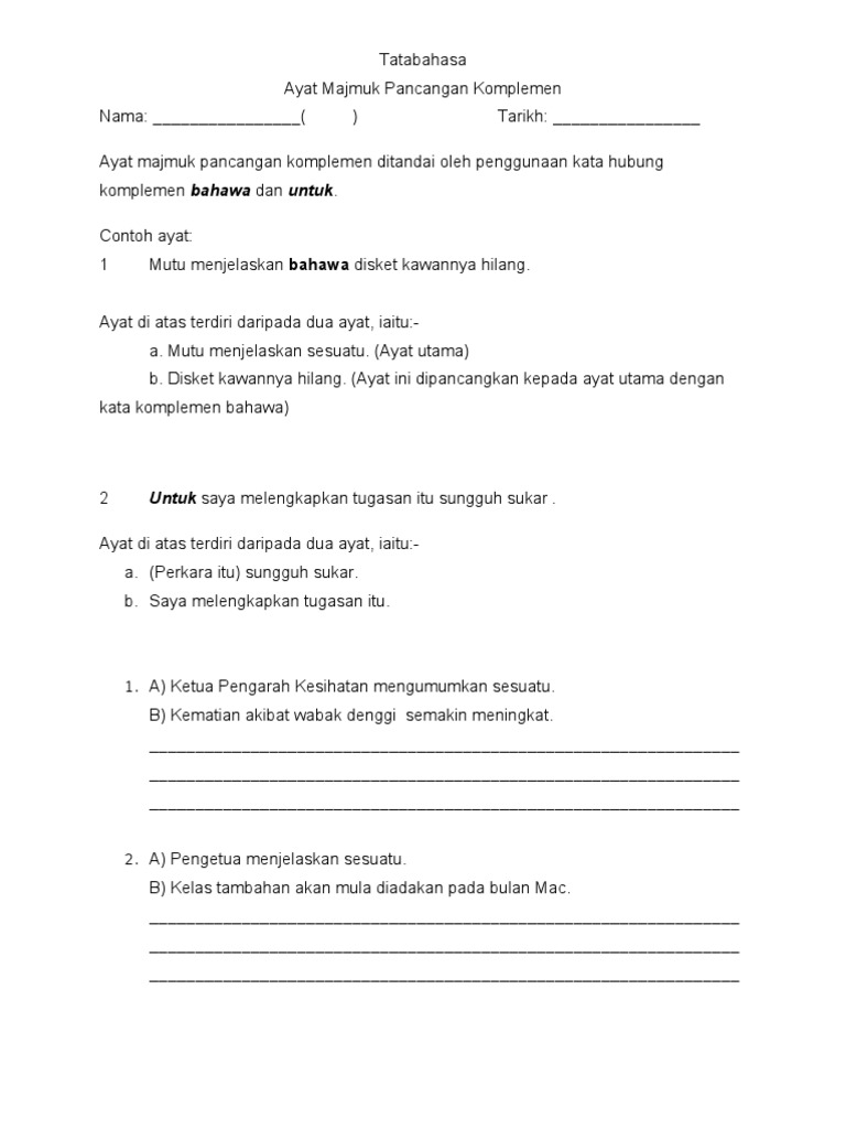 Nota Dan Latihan Ayat Majmuk Pancangan Komplemen Doc