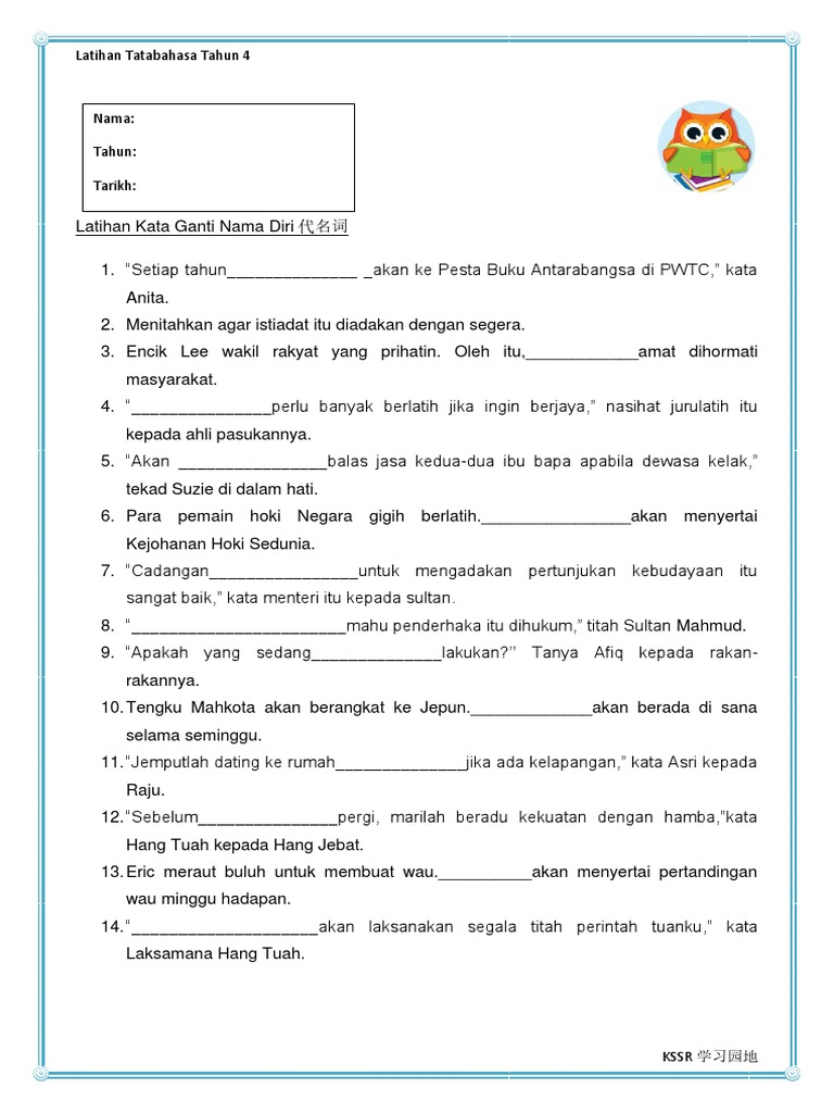 Senarai Latihan Bahasa Melayu Tahun 4 Yang Bernilai Khas Untuk Para Murid Dapatkan Cikgu Ayu
