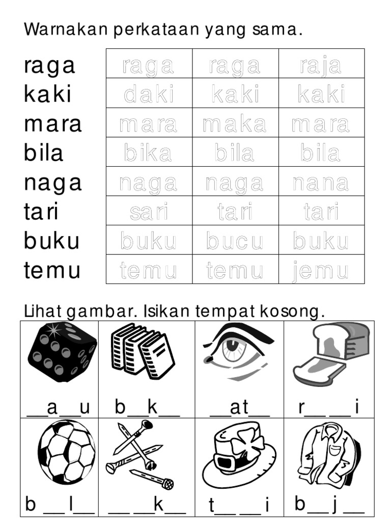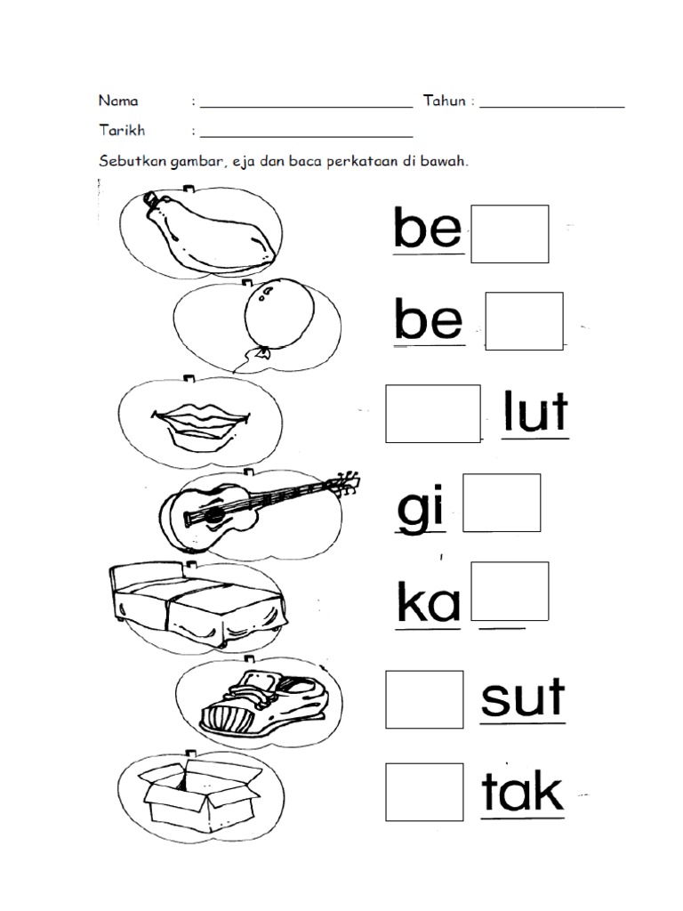 Lembaran Kerja Bahasa Melayu Suku Kata Kv Kvk