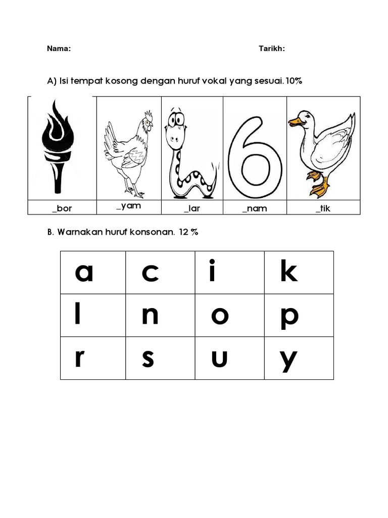 Lembaran Kerja Huruf Vokal Dan Konsonan