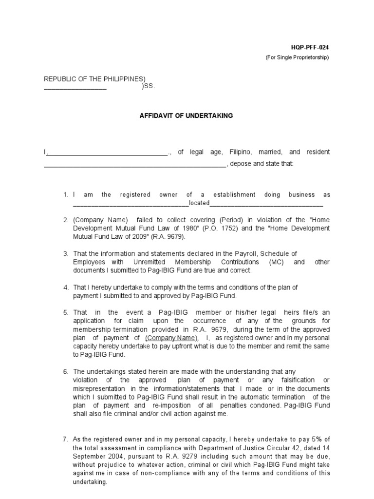 Affidavit Of Undertaking Hdmf Affidavit Government Information