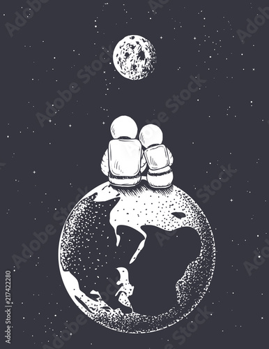 Astronaut Girl And Boy Looks To Moon From Earth Love In Space Romantic Vector Illustration Buy This Stock Vector And Explore Similar Vectors At Adobe Stock Adobe Stock