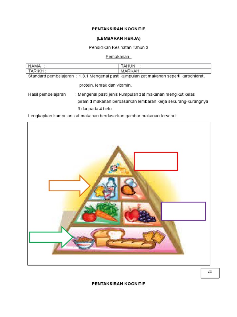 Makanan Lembaran Kerja Pendidikan Kesihatan Tahun 3