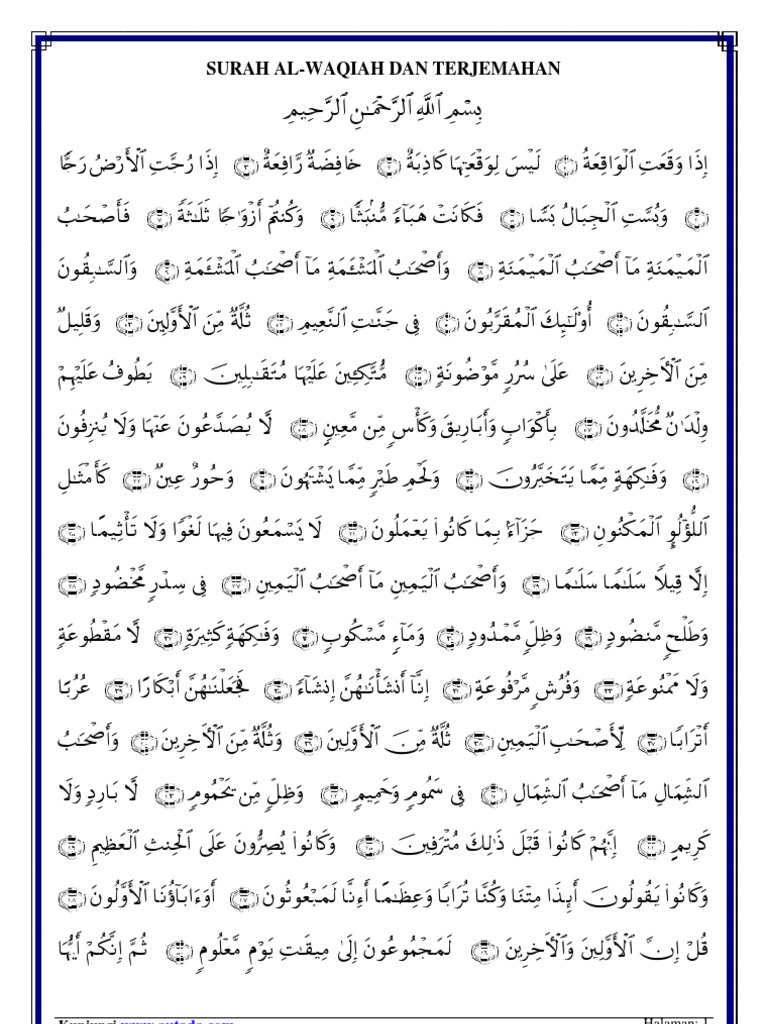 Surah Al Waqiah Text Arab Dan Terjemahan Fadihal Dan Keutamaan
