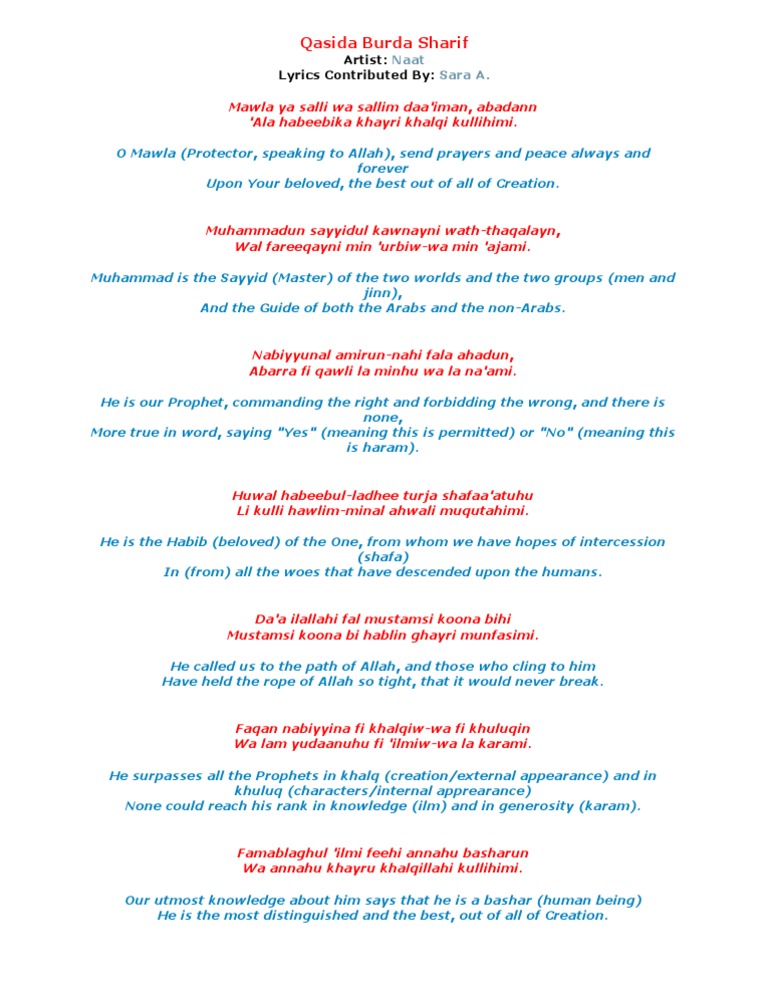 Download Software Qasida Burda Lyrics In Arabic Pdf Lasopastack