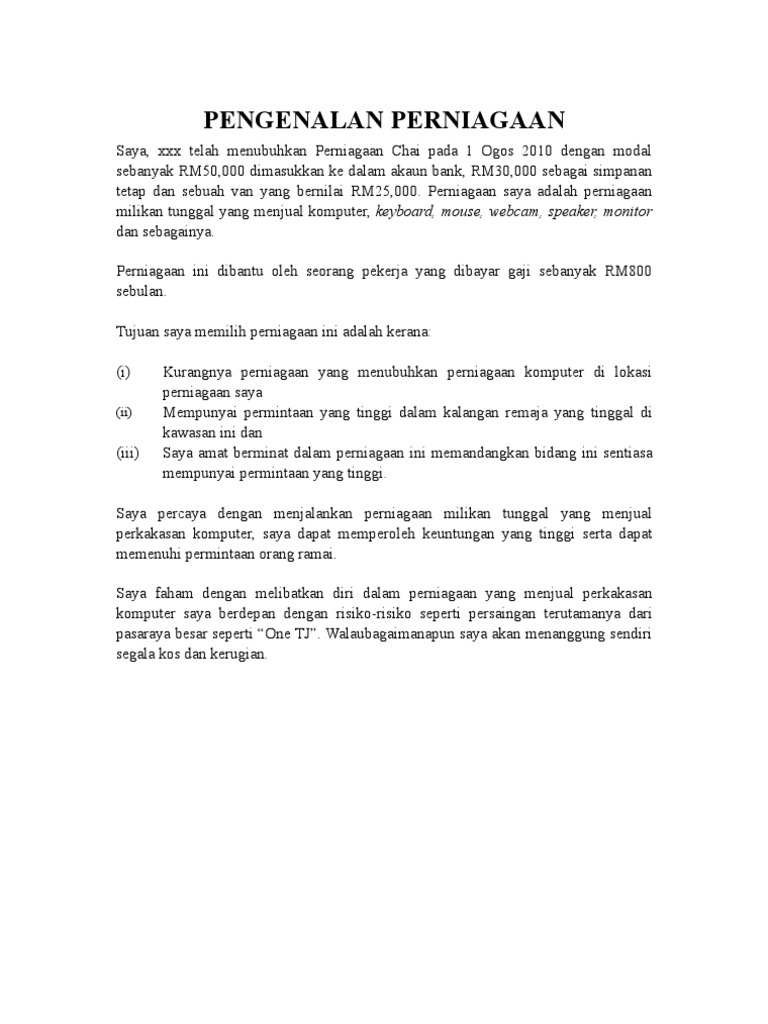 Milikan Tunggal Contoh Pengenalan Kerja Kursus Perniagaan Tingkatan 5