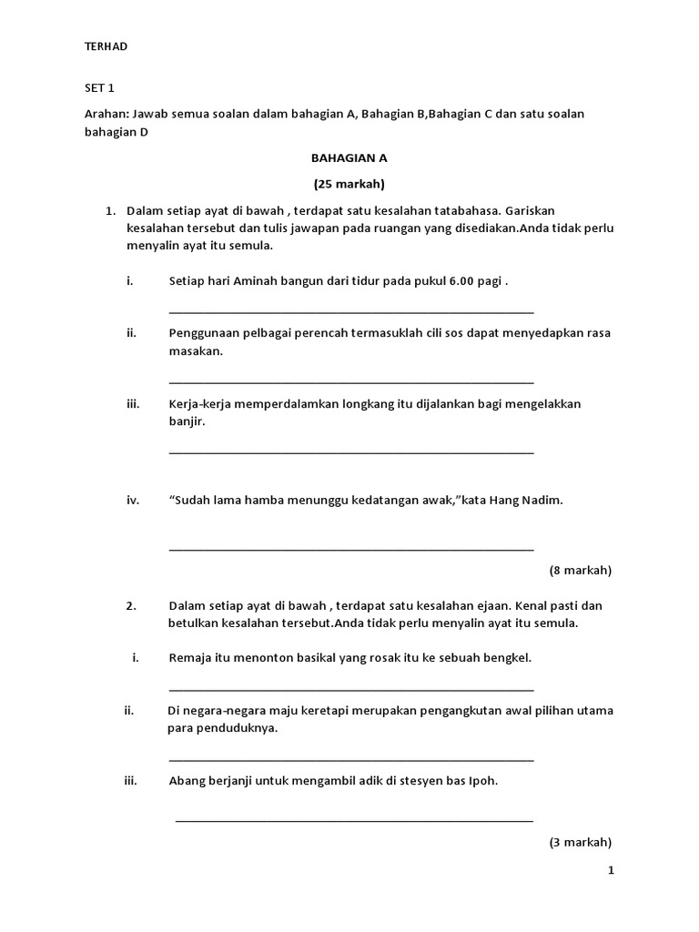 Contoh Soalan Percubaan Bahasa Melayu Pt3 Tahun Ini