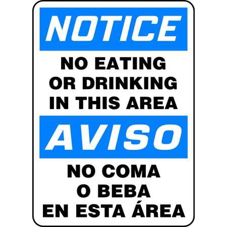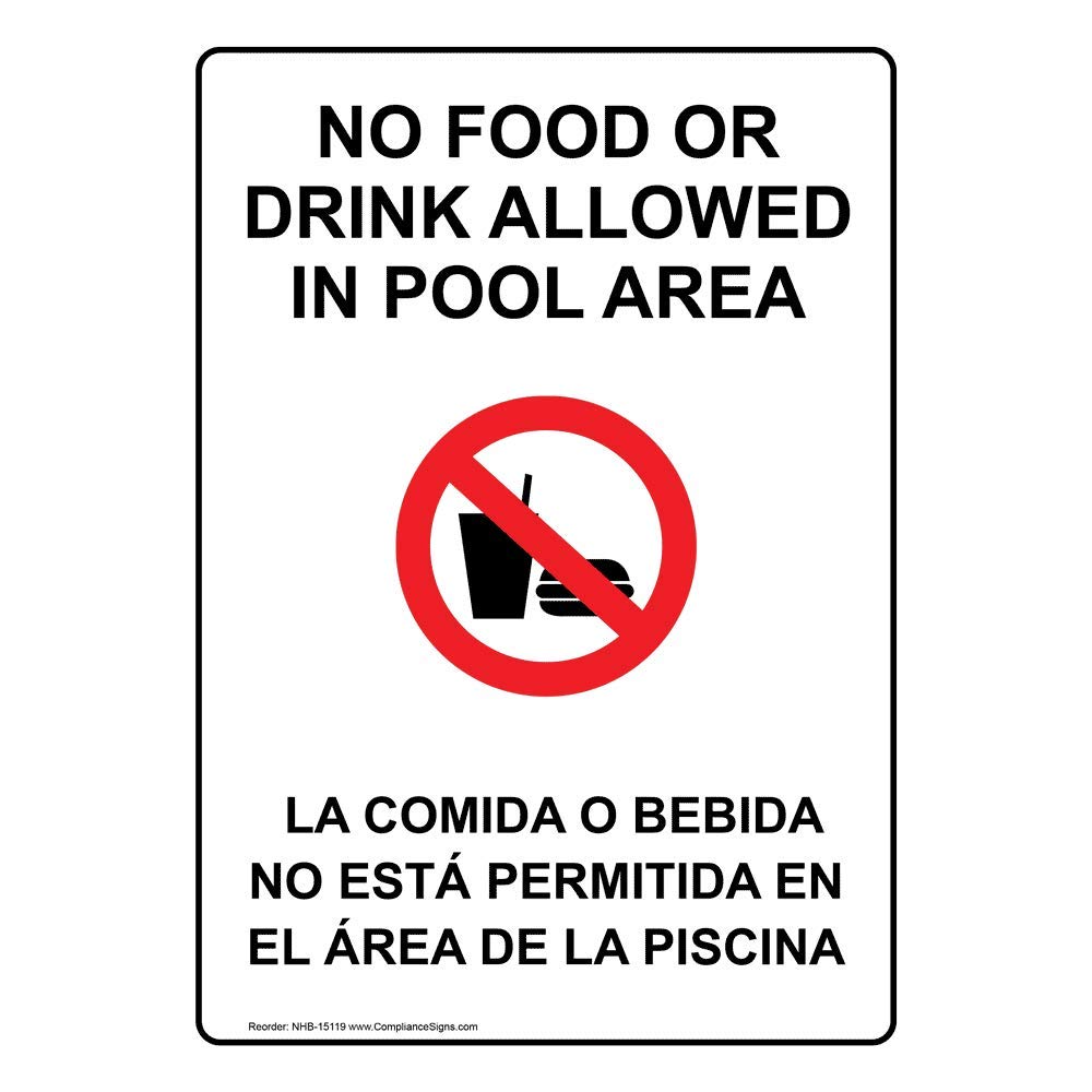 English spanish vertical osha notice no food no drink allowed bilingual safety sign with symbol.