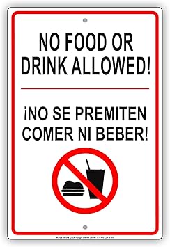 No food or drink sign in english and spanish. If you are responsible for an area where food and drink possession or consumption is a safety hazard like medical facilities manufacturing plants or athletic venues or you operate an establishment that sells food and drink choose a colorful no food or drink sign from this collection. 8 5 x 11 inch. No food or drink beyond this point bilingual lunchroom signs ban food and drink keeping areas clean. See 2 authoritative translations of no food in spanish with example sentences and audio pronunciations.