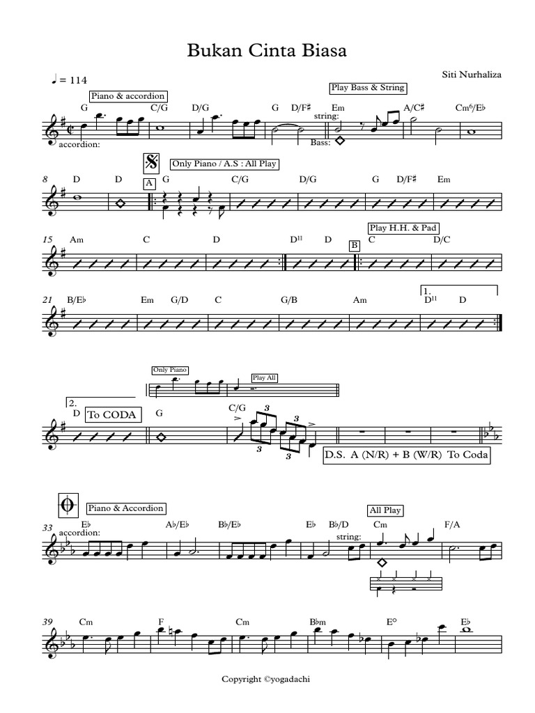 Not Angka Siti Nurhaliza Seindah Biasa Lhia S Music Notes