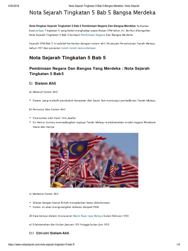 Nota Sejarah Tingkatan 5 Bab 5 Bangsa Merdeka