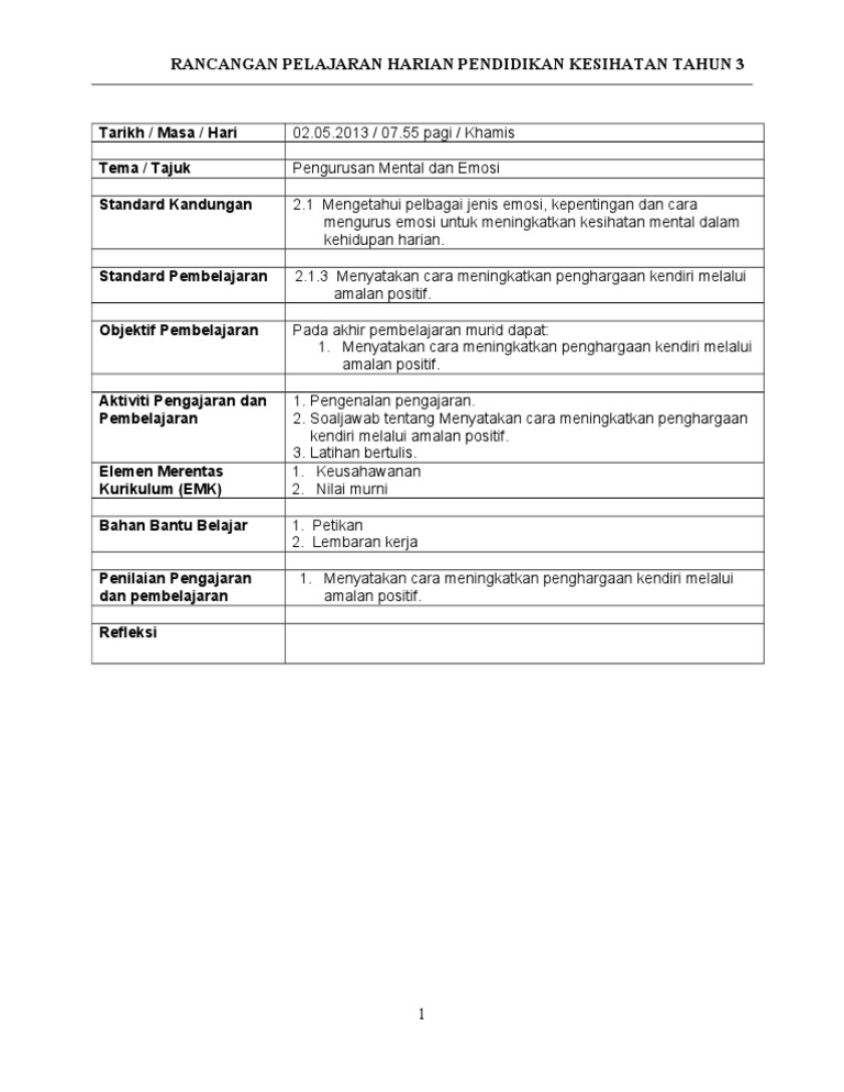 Himpunan Rpt Pendidikan Kesihatan Tahun 1 Yang Bernilai Khas Untuk Para Guru Lihat Cikgu Ayu