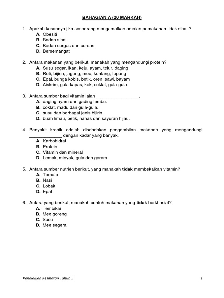 Soalan Pendidikan Kesihatan Tahun 5 Selangor S