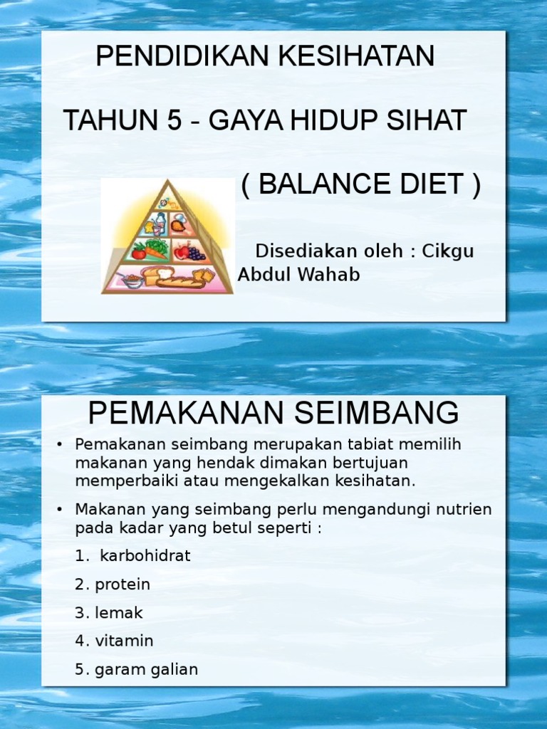 Pendidikan Kesihatan Tahun 5 Gaya Hidup Sihat Balance Diet