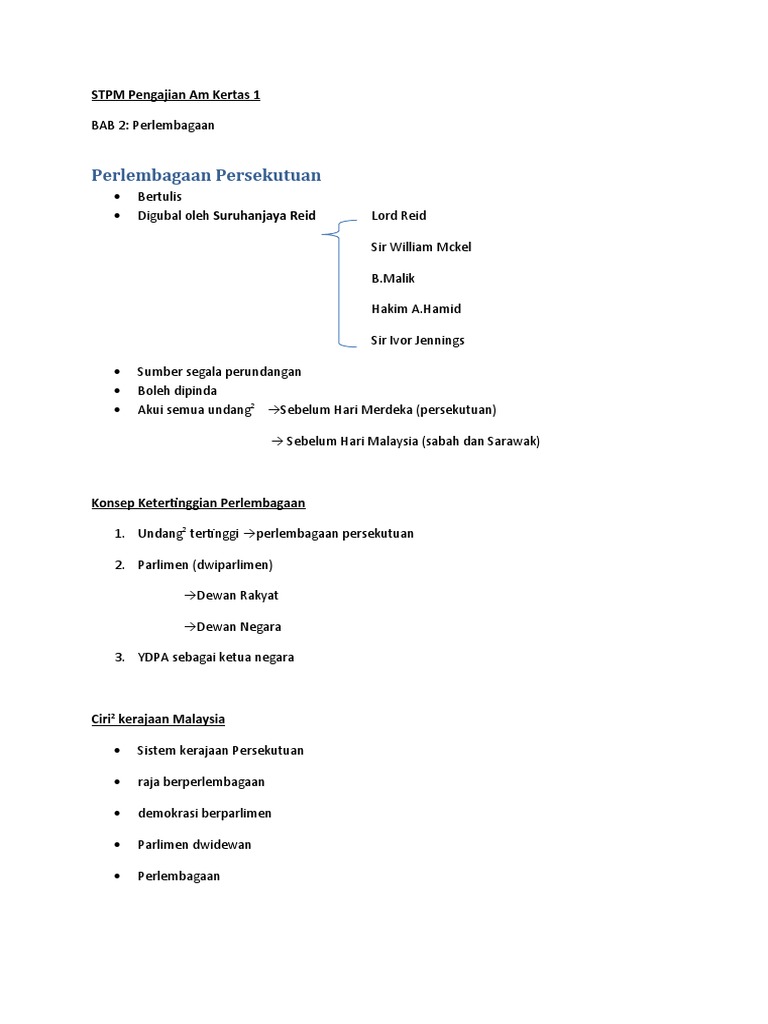 Stpm Pengajian Am Bab 2 Perlembagaan
