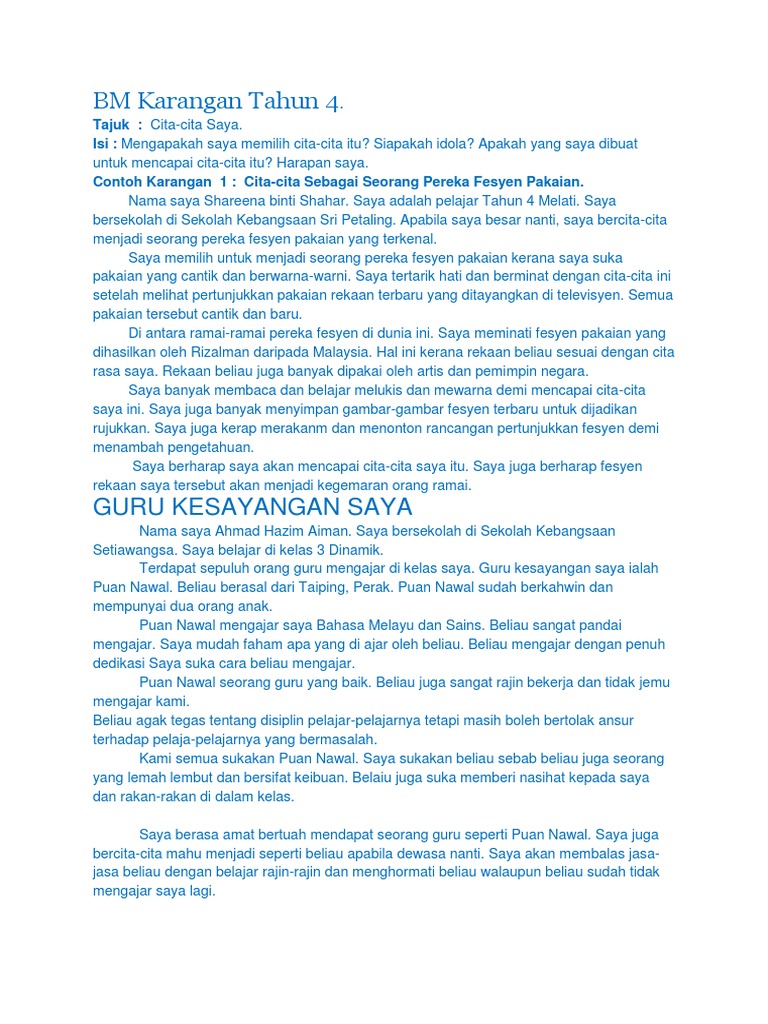 20 Karangan Bahasa Melayu Untuk Murid Tahap 1 Tahun 1 2 3 Mycikgu Net