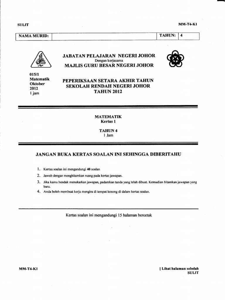 Kertas Soalan Matematik Tahun 4 Kssr Sjkt Tersoal Q