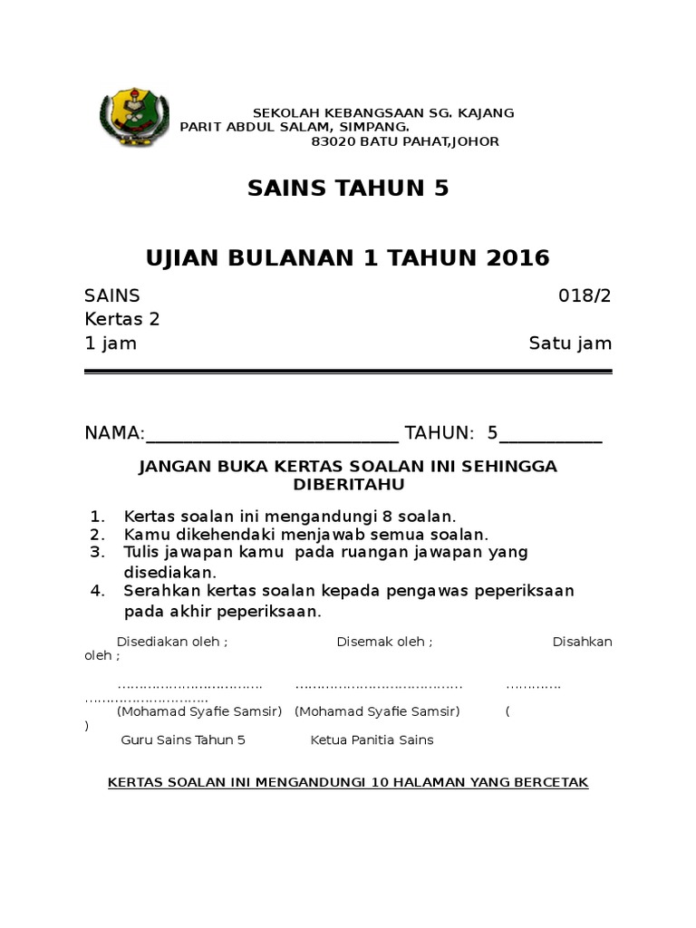 Senarai Peperiksaan Pertengahan Tahun Sains Tahun 5 Yang Terbaik Khas Untuk Ibubapa Cetakkan Pekeliling Terbaru Kerajaan