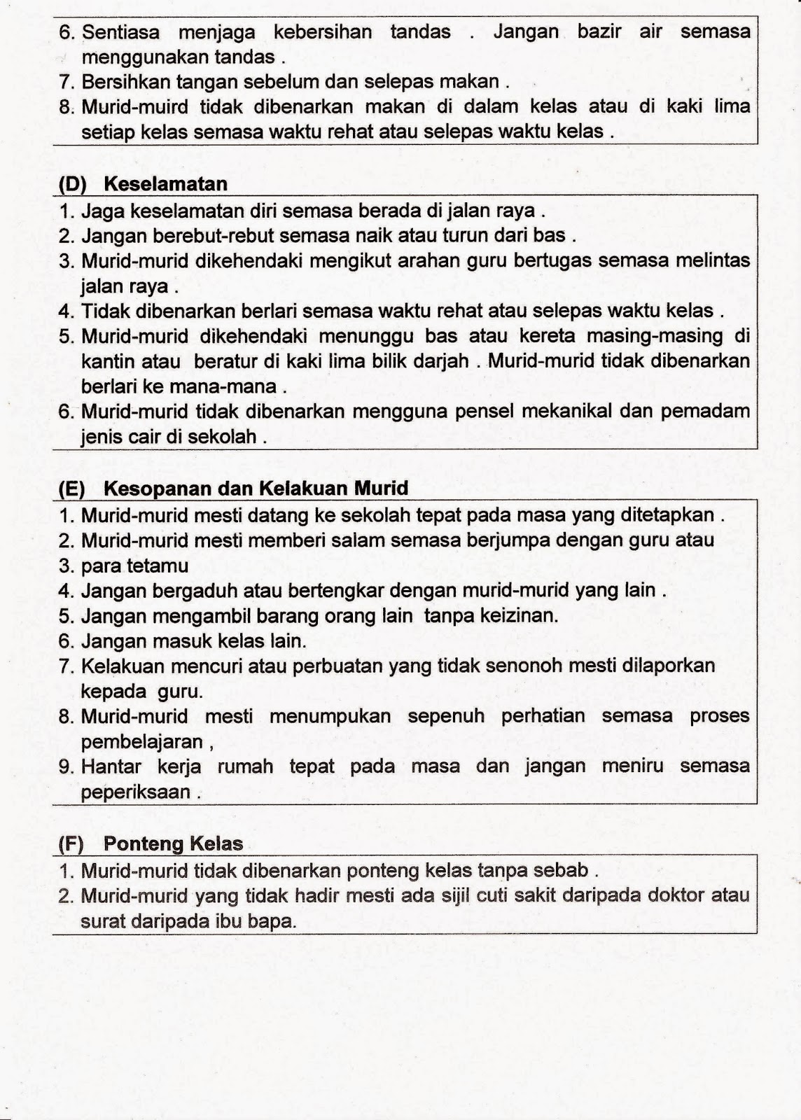 Peraturan Semasa Berada Di Dalam Kelas