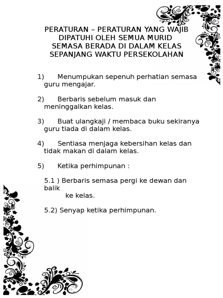 Peraturan Di Dalam Kelas