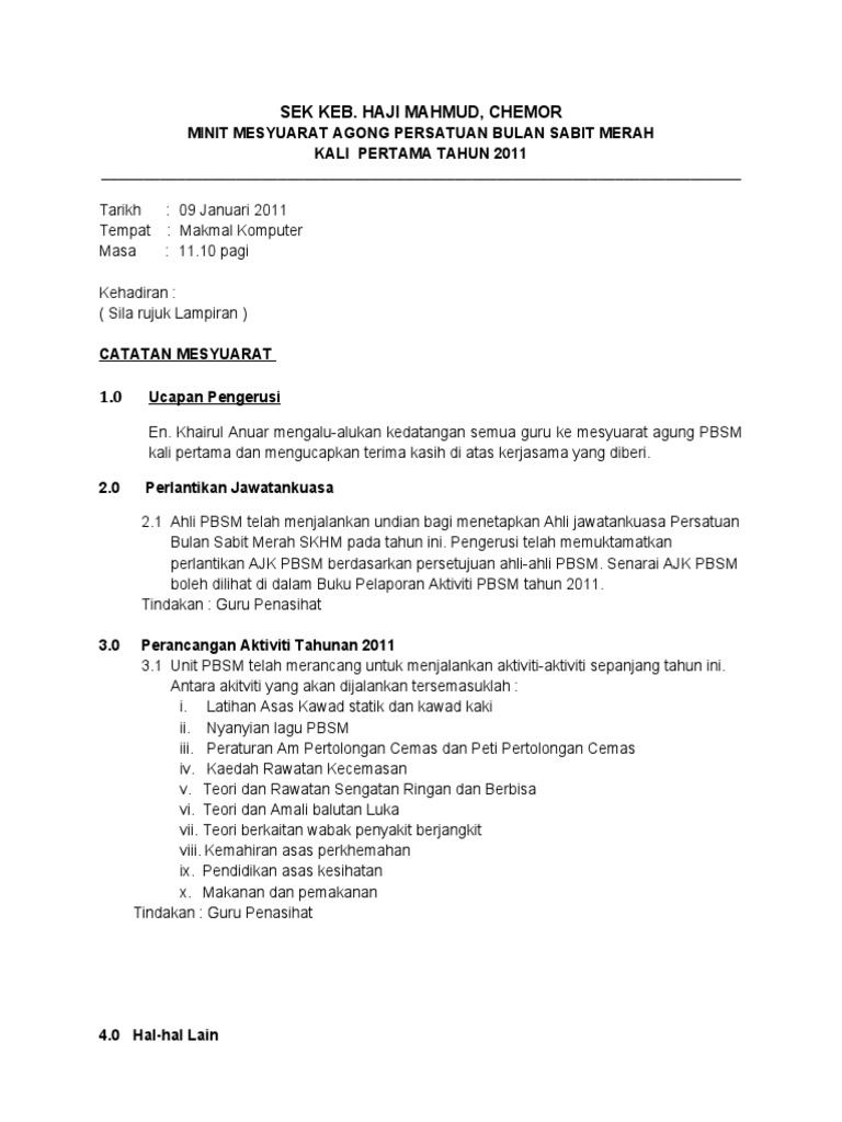 Doc Contoh Minit Mesyuarat Ajk Persatuan Bahasa Melayu Etiesha Rais Academia Edu