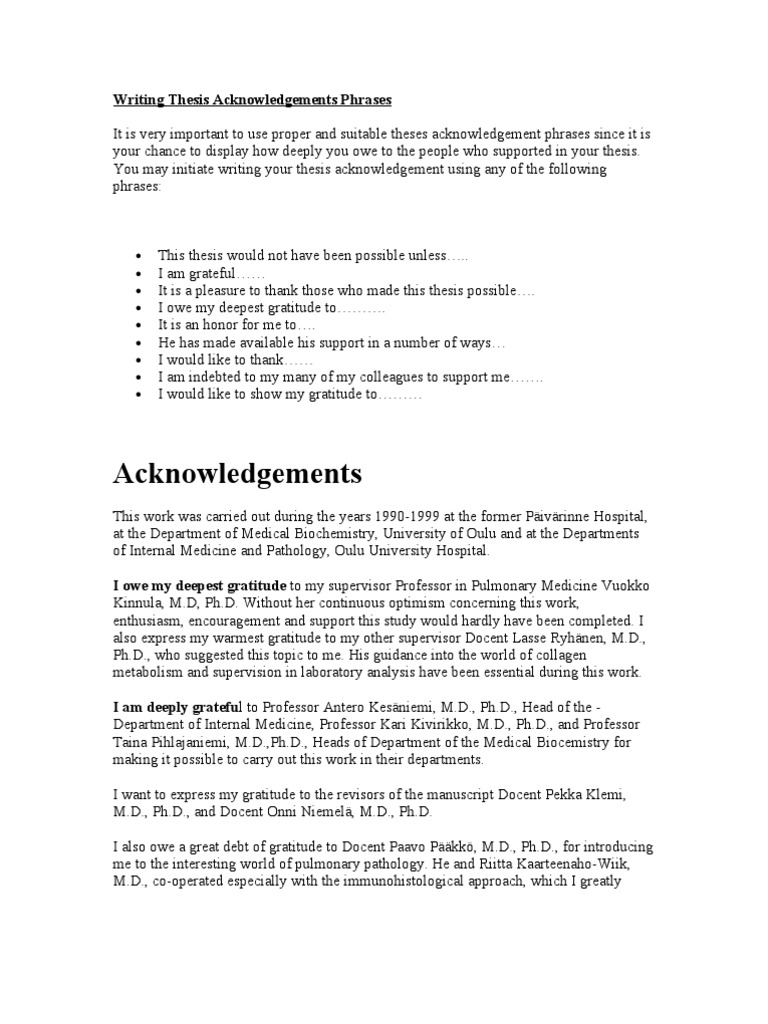 Writing Acknowledgement For Phd Thesis