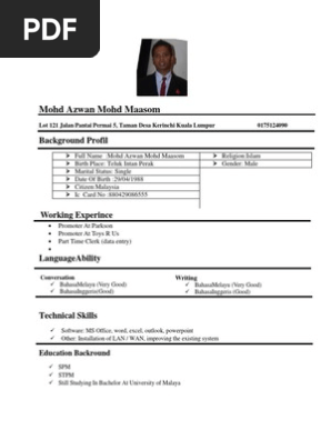 Contoh Full Resume In English 2 Microsoft Technology